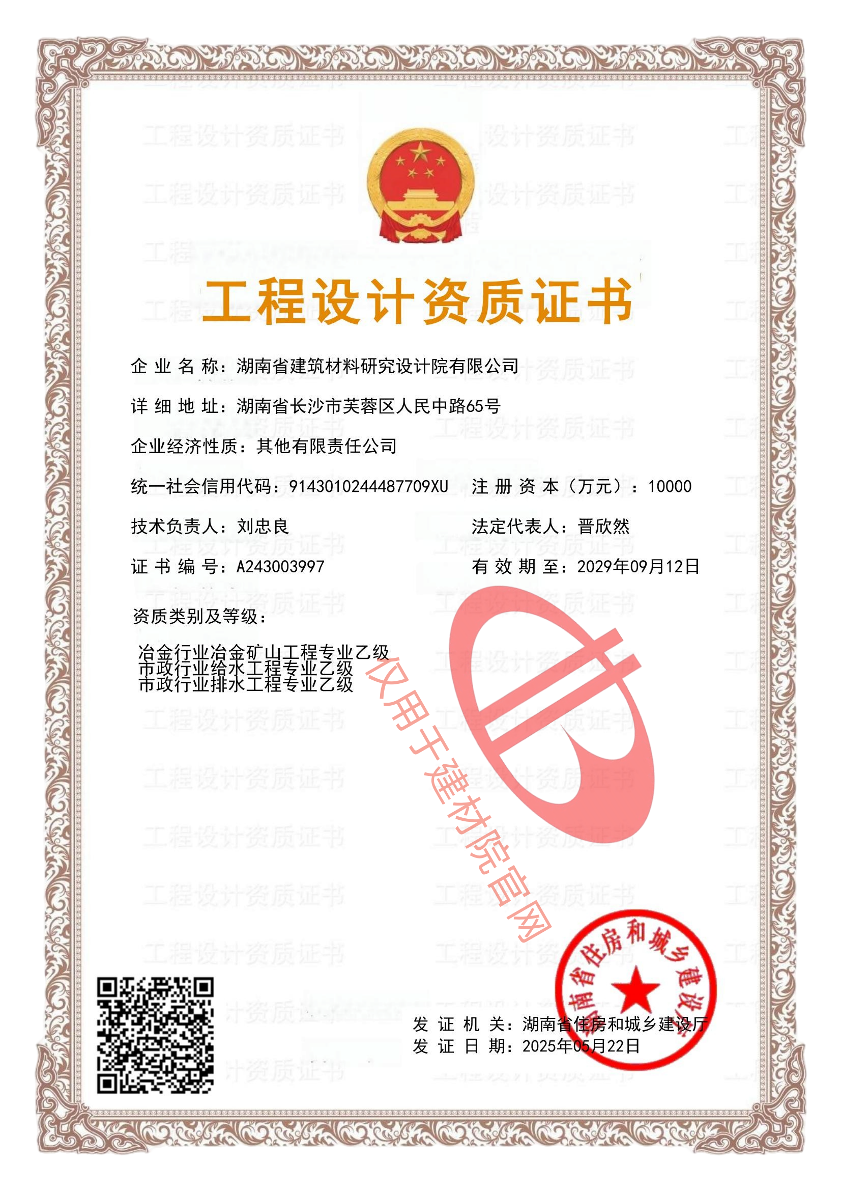 湖南省建筑材料研究設(shè)計(jì)院有限公司的前身為湖南省建筑材料研究設(shè)計(jì)院,成立于1958年,是1993年全國首批榮獲國家建材行業(yè)設(shè)計(jì)、工程總承包甲級資質(zhì)的四個(gè)科研設(shè)計(jì)單位之一。